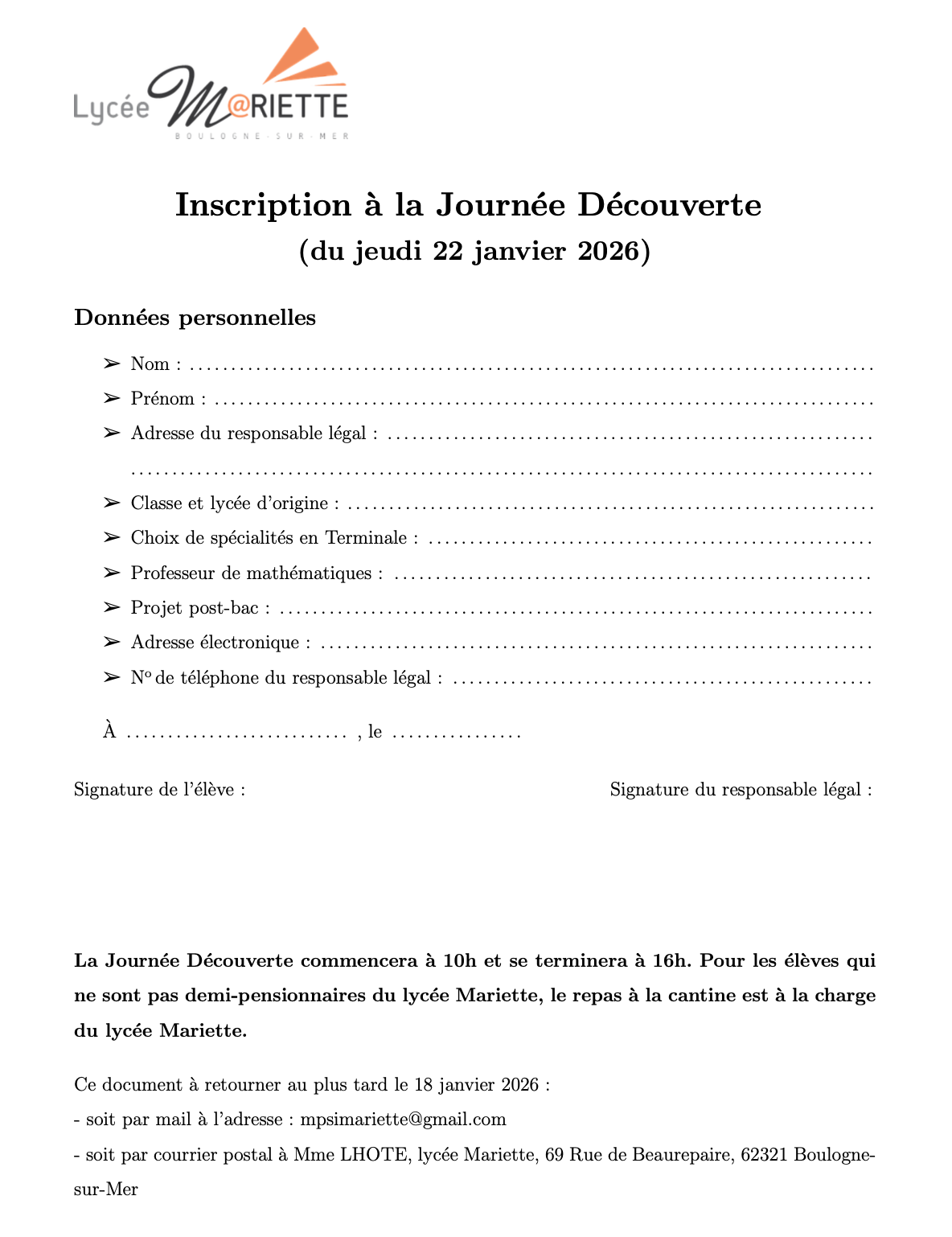 Bienvenue sur le site officiel des Classes Préparatoires aux Grandes Écoles scientifiques du lycée Auguste Mariette de Boulogne-sur-mer.