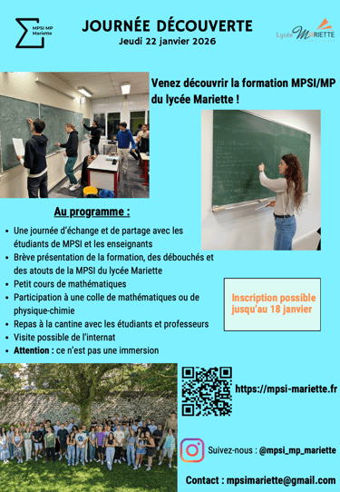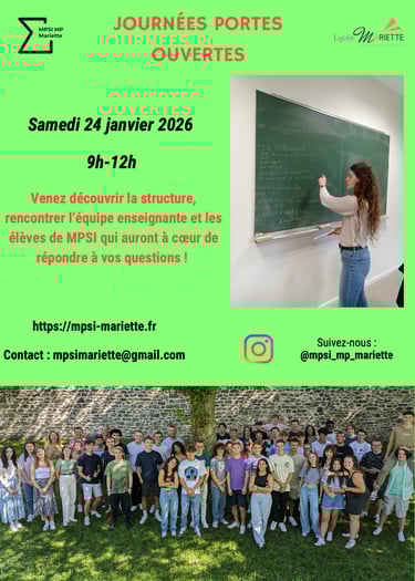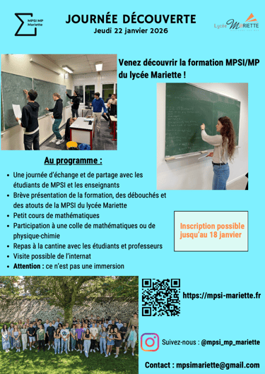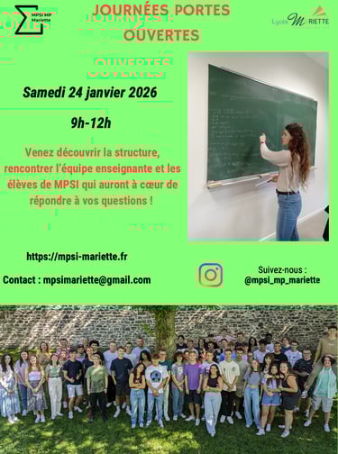 Vous trouverez sur ce site toutes les informations relatives aux classes préparatoires MPSI-MP présentes au lycée.