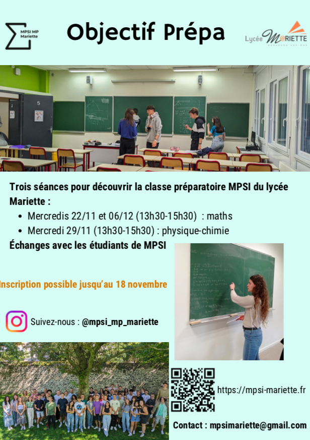 Les enseignants de mathématiques et de physique-chimie de MPSI/MP du lycée Mariette ont proposé aux lycéens du bassin trois séances de mathématiques et de physique-chimie afin de découvrir la classe préparatoire du lycée.