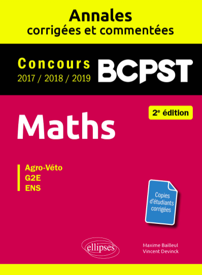 Annales corrigées et commentées pour le concours BCPST (années 2017, 2018, 2019, concours Agro-Véto, G2E et ENS), éditions Ellipses, co-écrit avec Maxime Bailleul
